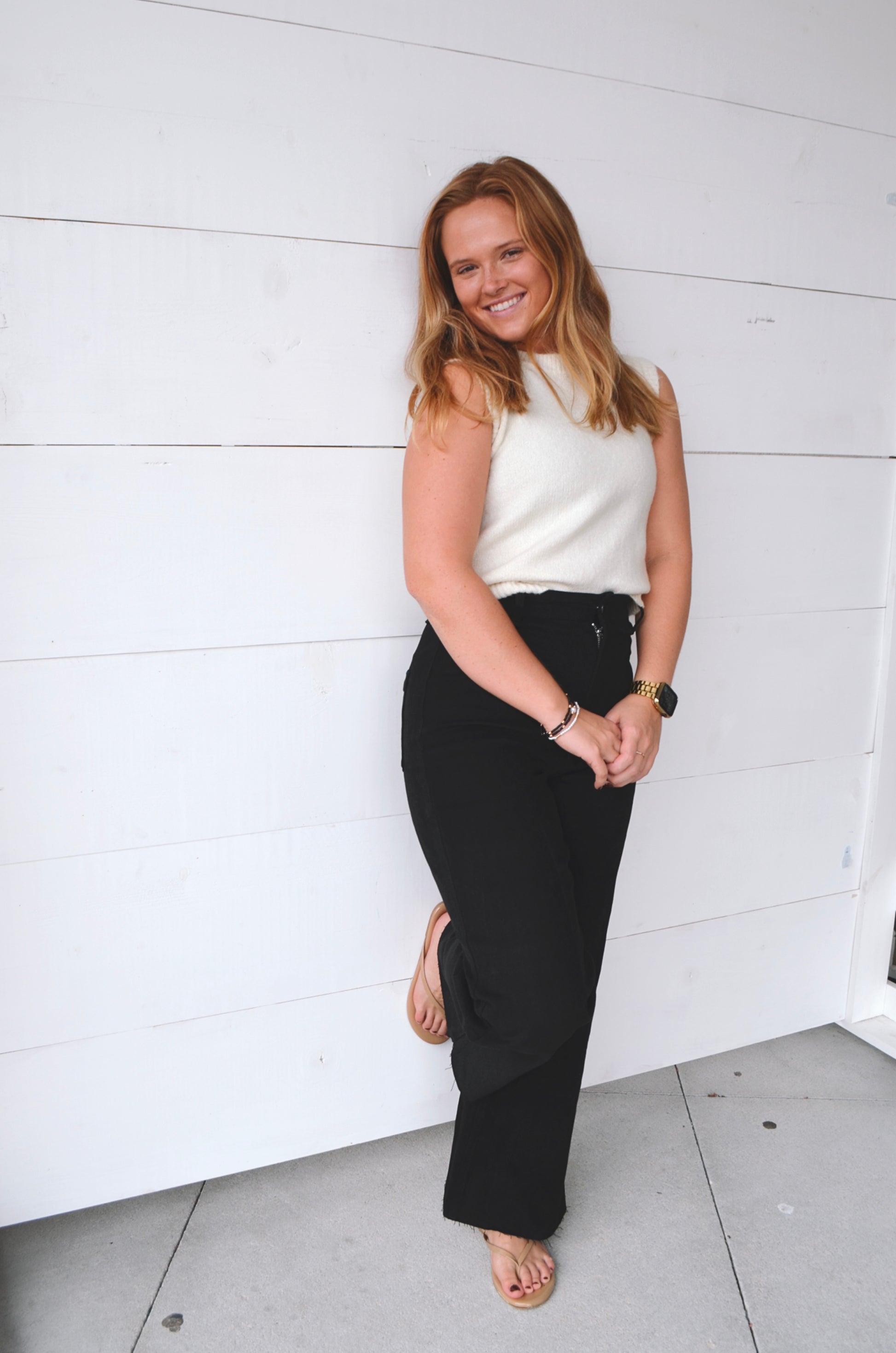 Fuzzy, knit, crop top! This sleeveless silhouette is boxy in shape but stretchy around the body. Timeless, round-neck, design that makes styling and wearing easy. This top runs true to women's sizing.